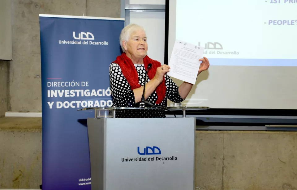 En la oportunidad también se aprovechó para reconocer como profesora visitante permanente de la UDD a la PhD Anne Bliss, Senior Instructor Emérita of University of Colorado at Boulder, que ha trabajado con los estudiantes de doctorado de la Universidad del Desarrollo durante los últimos cuatro años.