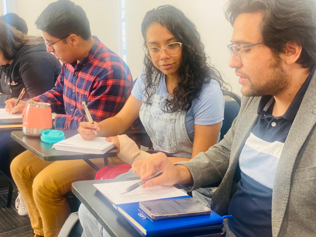 En el primer semestre el enfoque está centrado en la escritura, por lo que el “Writing Workshop” comenzó el lunes 1 de abril con la planificación y redacción en inglés de una propuesta para su proyecto doctoral, para posteriormente trabajar en grupos muldisciplinarios el tópico “Water in Chile”, por ejemplo, la influencia de la minería en la calidad del agua, las pruebas de microplásticos en agua embotellada, entre otros subtemas, donde debían plantear problemáticas y posibles soluciones.