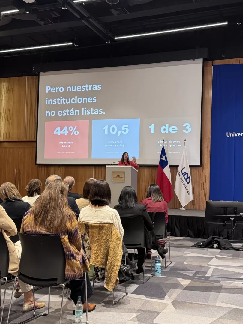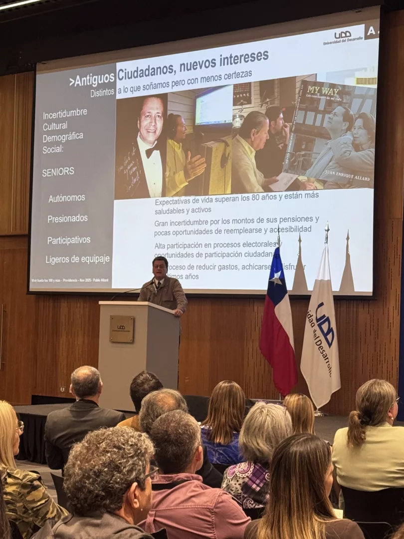 En este contexto, la directora ejecutiva de la Vicerrectoría de Investigación y Doctorados, Virginia Herrera, destacó el valor de esta articulación interdisciplinaria: “La nueva longevidad es un fenómeno complejo que requiere ser abordado desde múltiples disciplinas. Este seminario permitió visibilizar el conocimiento que ya existe en la Universidad del Desarrollo, pero también abrir oportunidades de colaboración para generar soluciones concretas con impacto real en la calidad de vida de las personas mayores. Nuestro objetivo es consolidar a la UDD como un referente en investigación y acción en torno a la longevidad en Chile”